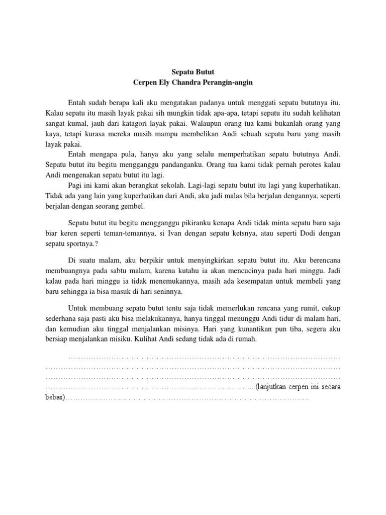 Lanjutkan Cerpen Sepatu Butut Secara ... | 1224x1632 px